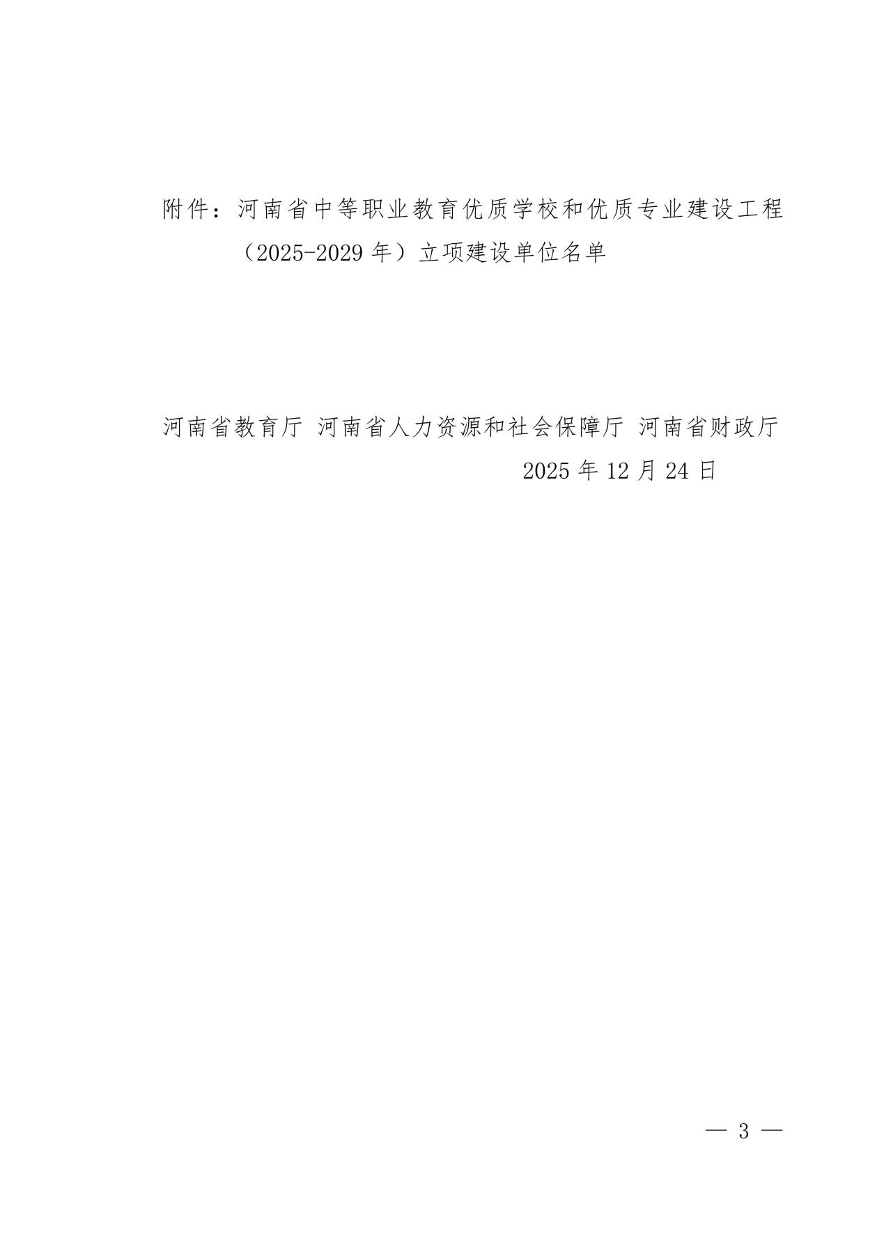 东风浩荡传佳讯,岁末欢歌奏凯旋!在省委、省政府的坚强领导和社会各界的大力支持下,河南省工业学校全体师生员工凝心聚力、砥砺奋进,在河南省教育厅、河南省人力资源和社会保障厅、河南省财政厅联合组织的“河南省中等职业教育优质学校和优质专业建设工程(2025-2029年)”遴选中,以优异的成绩成功入选立项建设单位!特向全校师生、广大校友及所有关心支持学校发展的社会各界人士,报此喜讯,共享荣光!